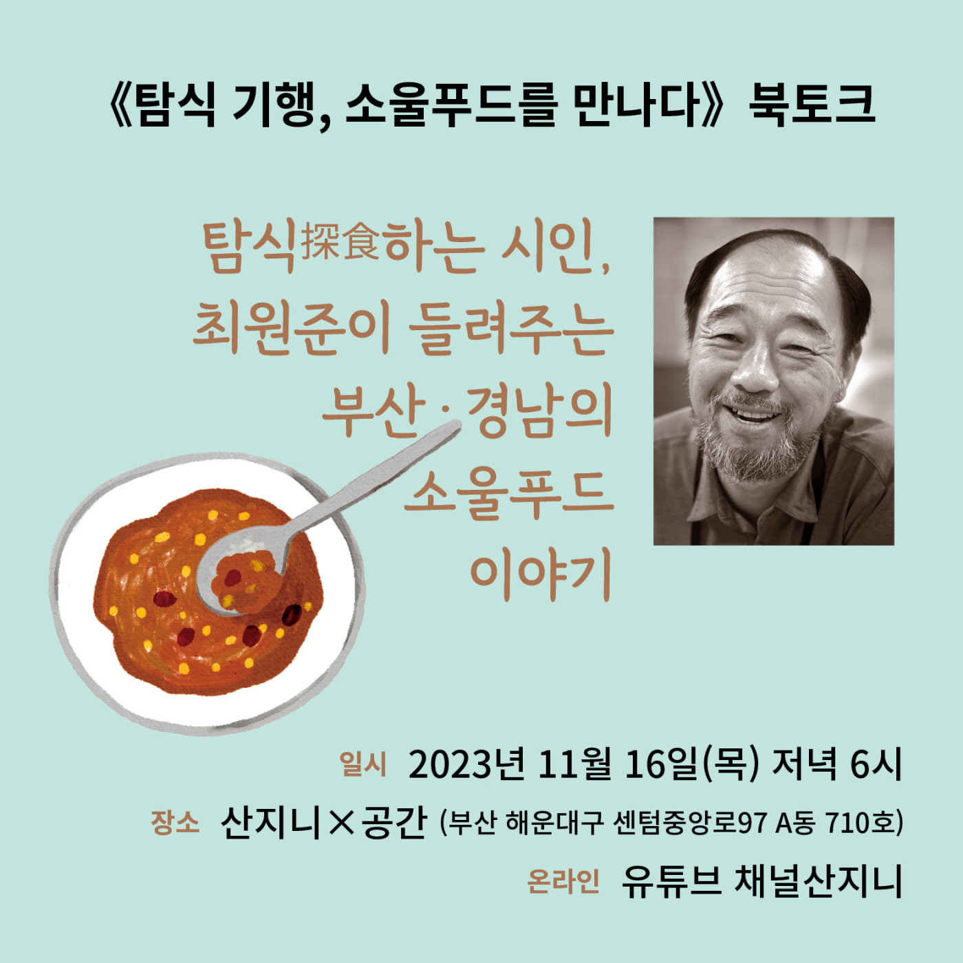 최원준 시인 <탐식 기행, 소울푸드를 만나다> 북토크 소식을 전합니다.