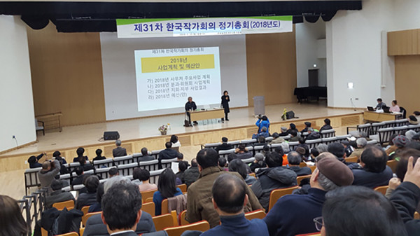 한국작가회의 총회 모습 페이지 정보 작성일 23-04-21 본문 한국작가회의 정기총회에 신임 부산작가회의 지회장과 사무국장이 대표로 참여해 지난해의 부산작가회의 사업보고와 올해의 착수할 사업계획을 보고하고 돌아왔습니다. 목록 이전글제53회 시민과 함께하는 문학 톡톡 행사 사진 23.04.21